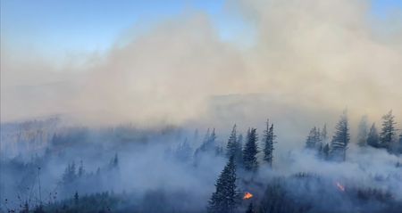 (Reuters) -Cooler weather overnight helped firefighters in Washington state shrink a wildfire burning in a forested area about 20 miles (32 km) east of Vancouver, Washington, officials said on Monday.