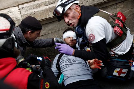 PARIS (Reuters) -Dozens of black-clad protesters clashed with police and broke shop windows on Tuesday on the margins of a demonstration when several thousand people took to the streets of Paris to call for wage hikes as high inflation eats away their purchasing power.