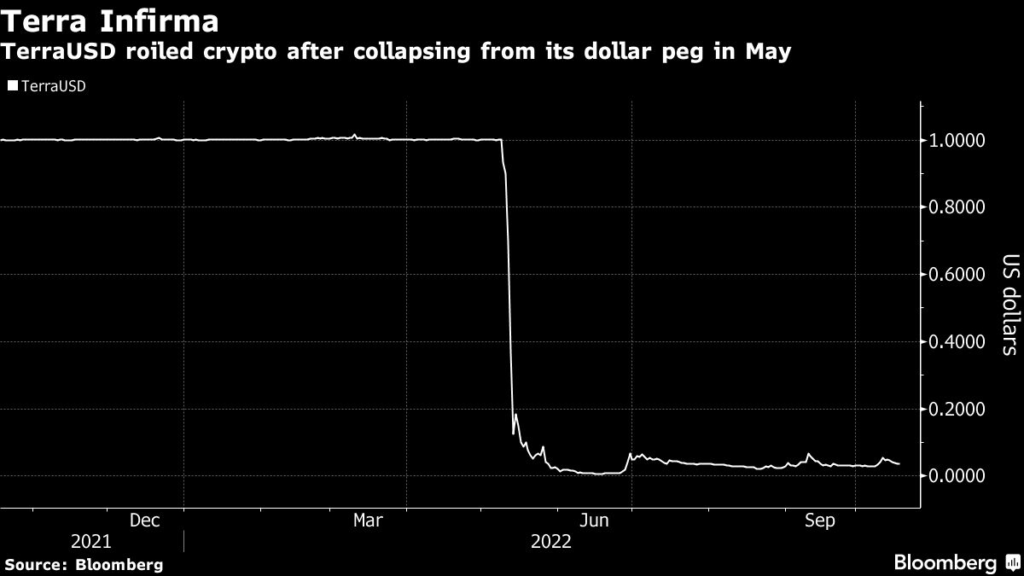 Algorithmic stablecoin TerraUSD was meant to have a constant $1 value via a mix of algorithms and trader incentives involving Luna but the edifice imploded in May, sending shockwaves through the crypto market and catching regulators off guard.