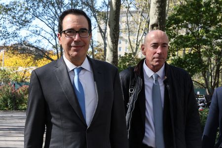 NEW YORK (Reuters) – Former U.S. Treasury Secretary Steven Mnuchin on Thursday took the witness stand in the defense of onetime Donald Trump fundraiser Tom Barrack, who is on trial on charges he illegally acted as a foreign agent for the United Arab Emirates.