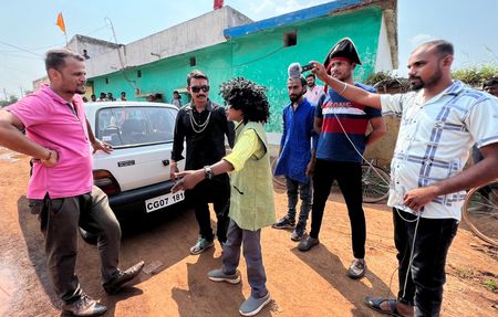 TULSI, India (Reuters) – A man sporting a black cap and pink T-shirt sits on a bullock cart, pile of grass behind him, and busts a rhyme to a camera while riding across the dusty streets of India’s Tulsi village.