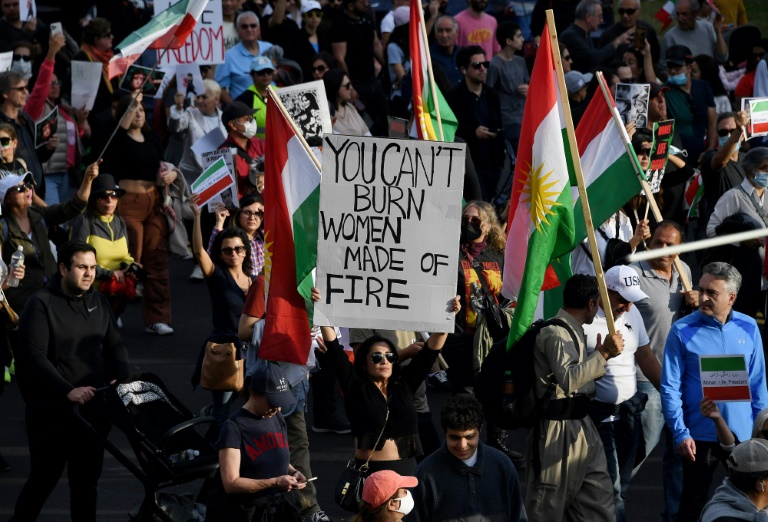 Thousands of people, including many of Iranian origin, marched Saturday in Washington to show support for nationwide protests in Iran sparked by the death of Mahsa Amini last month.