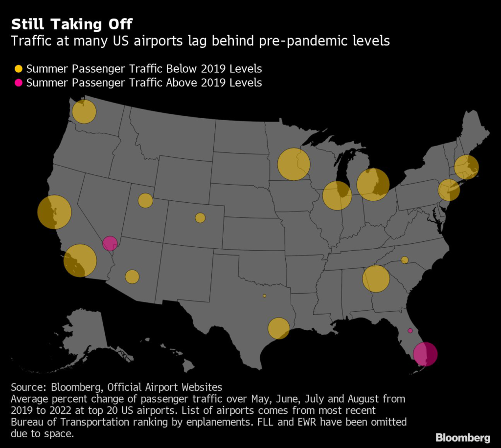 24 Thanksgiving holiday through New Year’s is set to reach or exceed 2019 levels, when 93 million people packed US flights. This summer, the desire to resume vacationing and visiting family boosted passenger traffic to about 90% of pre-pandemic levels, according to a Bloomberg analysis of Transportation Security Administration checkpoint data.