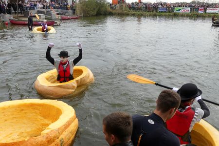 The race in Kasterlee started in 2008 after local growers decided they needed to find a different use for their 400-plus kg (880-pound) pumpkins besides turning them into soup, and it has grown in popularity, said local Pumpkin Society chairman Paul Boonen.