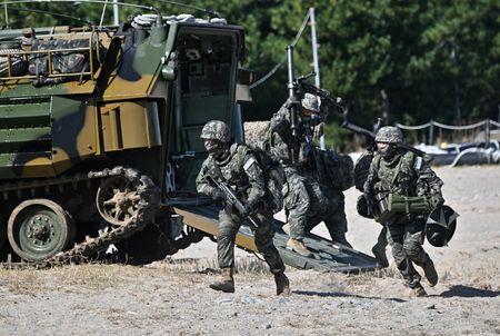 SEOUL (Reuters) – South Korean marines in amphibious armoured vehicles waded ashore under the guns of patrolling warships on Wednesday as part of large-scale military exercises that organizers say are necessary to prepare for any North Korean threats.