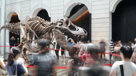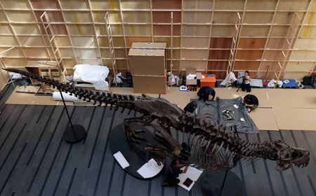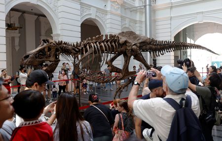 SINGAPORE (Reuters) – The skeleton of a Tyrannosaurus Rex drew thousands of visitors in Singapore on Friday eager to have a look at the huge fossil before it heads for auction in Hong Kong.