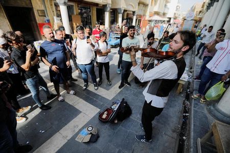 BAGHDAD (Reuters) – With a violin on his back and maps in his bag, Dan Hodd left Spain a month ago and was cycling through busy Baghdad as he heads to the COP27 climate talks in Egypt that he firmly intends to reach without flying.
