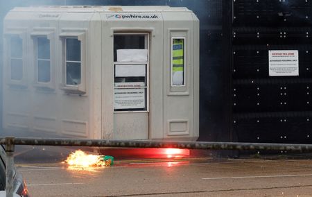 DOVER, England (Reuters) – “I heard this bang and I thought it was a bird scarer,” Reuters photographer Peter Nicholls recalls, describing the moment a man fire-bombed the gates of a centre for processing migrants in the English port of Dover and then took his own life.