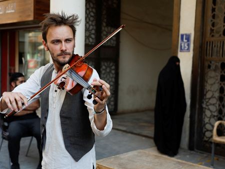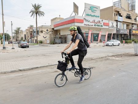 BAGHDAD (Reuters) – With a violin on his back and maps in his bag, Dan Hodd left Spain a month ago and was cycling through busy Baghdad as he heads to the COP27 climate talks in Egypt that he firmly intends to reach without flying.