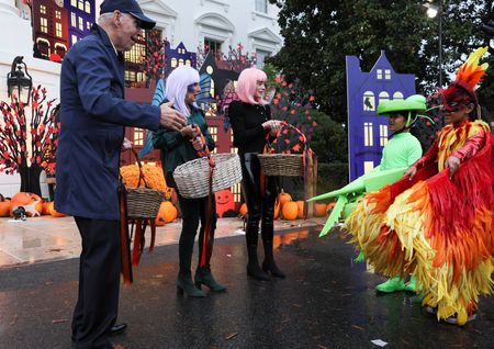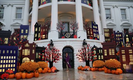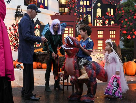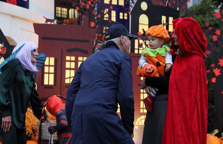 WASHINGTON (Reuters) – President Joe Biden and first lady Jill Biden welcomed trick-or-treaters to the White House to celebrate Halloween on Monday, their first time hosting such a celebration since taking office.
