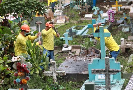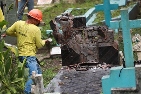 SAN SALVADOR (Reuters) – Salvadoran prisoners collaborating with officials smashed gangster graves with hammers and metal poles in President Nayib Bukele’s latest crackdown on violent gangs, this time aiming to prevent any would-be admirers from paying their respects.
