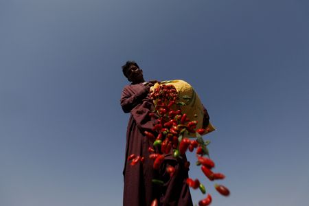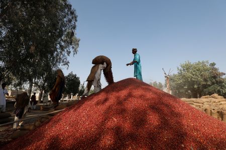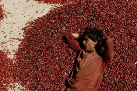 KUNRI, Pakistan (Reuters) – Near Kunri, a southern Pakistani town known as Asia’s chilli capital, 40-year old farmer Leman Raj rustles through dried plants looking for any of the bright red chillis in his largely destroyed crop which may have survived.