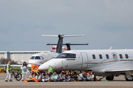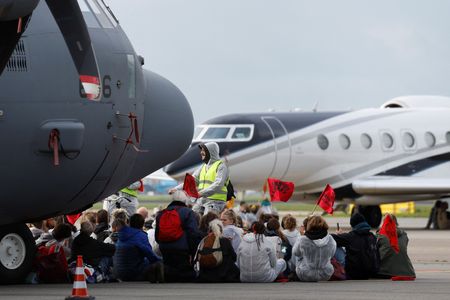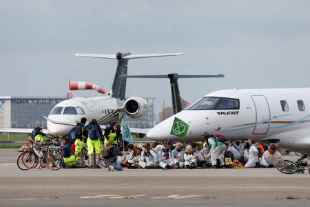 AMSTERDAM (Reuters) -Hundreds of environmental activists wearing white overalls stormed an area holding private jets at Amsterdam’s Schiphol Airport and stopped aircraft from leaving for hours by sitting in front of their wheels on Saturday.