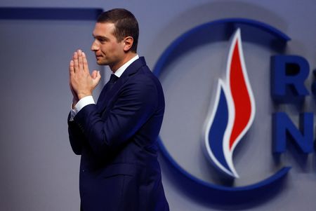 PARIS (Reuters) – France’s far-right Rassemblement National (RN) elected Jordan Bardella as president on Saturday, overwhelmingly backing the 27-year-old member of the European Parliament to succeed Marine Le Pen in the post.
