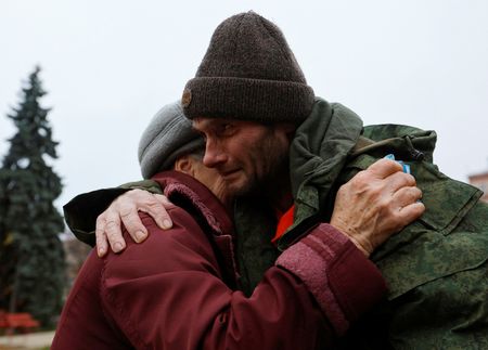 AMVROSIIVKA, Ukraine (Reuters) – Fighters affiliated with the Russian-installed administration of Ukraine’s eastern Donetsk region arrived in the town of Amvrosiivka on Sunday after being freed in a prisoner swap with the Ukrainian military.