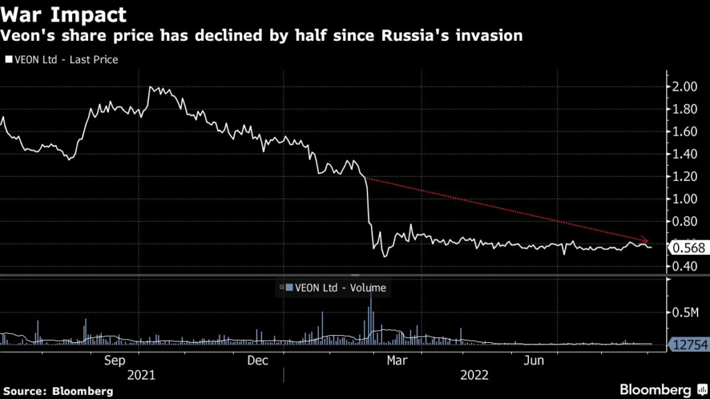 Veon’s share price has fallen by two-thirds this year as the invasion and subsequent sanctions on Russia by the US, European Union and UK undermined the company.