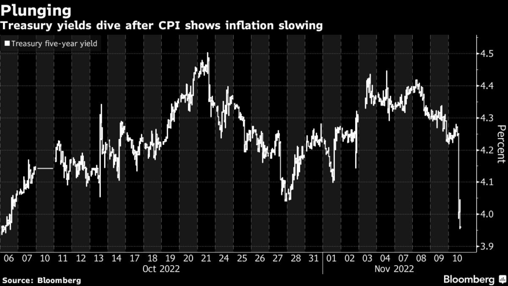 (Bloomberg) — Stocks are headed for the best post-inflation day rally in more than a decade as slower-than-projected price growth sparked bets the Federal Reserve can downshift its aggressive rate-hike path.