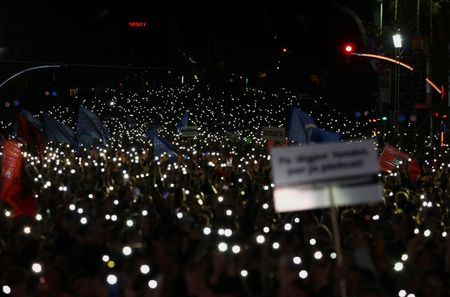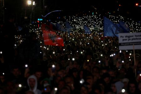 TIRANA (Reuters) – Opposition protesters scuffled with police in front of the office of Prime Minister Edi Rama on Saturday where tens of thousands had gathered to protest against corruption, rising poverty and a growing number of people leaving the country.