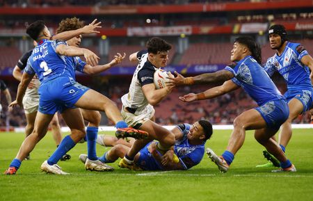 LONDON (Reuters) -Samoa stunned hosts England to reach the Rugby League World Cup final with a Golden Point victory in extra time after a thrilling semi-final had ended 26-26 on Saturday.