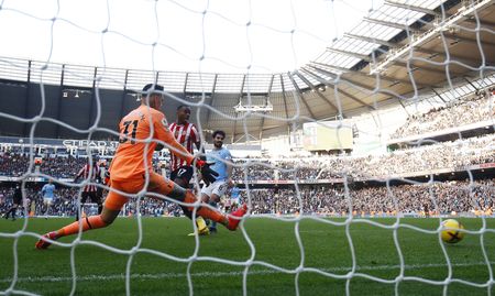 LIVERPOOL (Reuters) – Premier League champions Manchester City fell to their first home defeat of the season on Saturday as Ivan Toney secured a shock 2-1 win for Brentford while Tottenham Hotspur recovered from going behind three times to beat Leeds United 4-3.