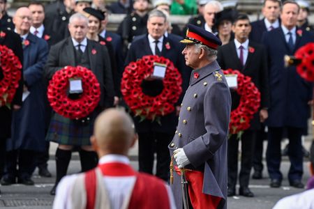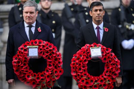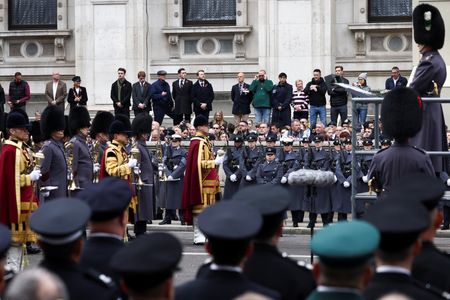 LONDON (Reuters) – Britain’s King Charles led Remembrance Day commemorations in London on Sunday for the first time as monarch, laying a newly designed wreath after a two-minute silence at The Cenotaph war memorial.