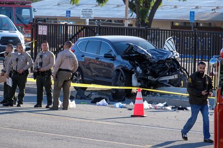 (Reuters) – Multiple Los Angeles County Sheriff’s Department recruits were injured when a car crashed into them on Wednesday morning while they were out for a run in Whittier, California, the department said.
