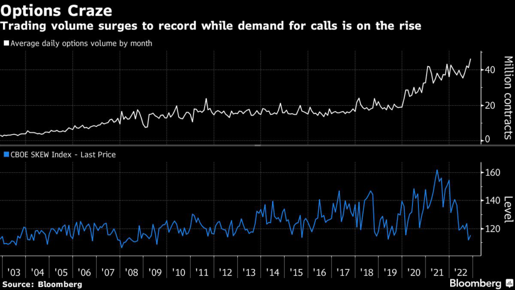 As usual in 2022, the biggest venue of impact was the US stock options market, where trading volumes are smashing records as investors of all stripes rush into short-dated contracts to catch up.