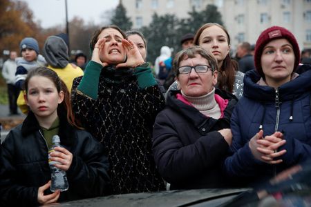 KHERSON, Ukraine (Reuters) – Under rainy skies, Ukrainian-controlled Kherson’s central square was a frenetic melee on Thursday afternoon of humanitarian aid queues and displays of patriotic celebration tinged with uncertainty about the future.
