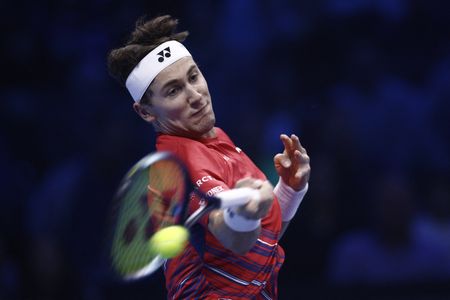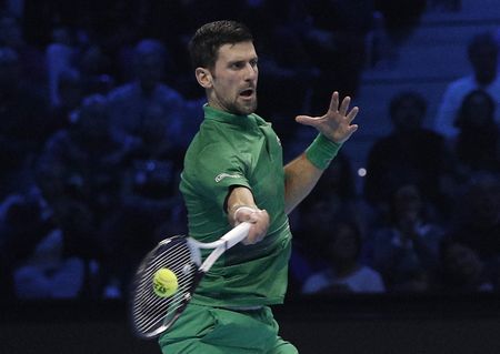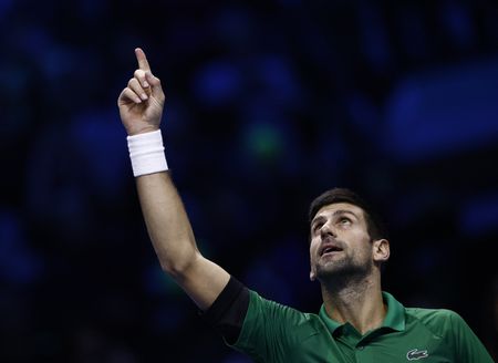 TURIN, Italy (Reuters) -Novak Djokovic beat Norway’s Casper Ruud 7-5 6-3 to collect a record-equalling sixth ATP Finals title on Sunday, earning the biggest paycheck ever in tennis – $4,740,300 – for completing the season-ending tournament unbeaten.