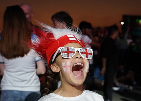 Soccer-England fans enjoy their day in the sun at World Cup opener
