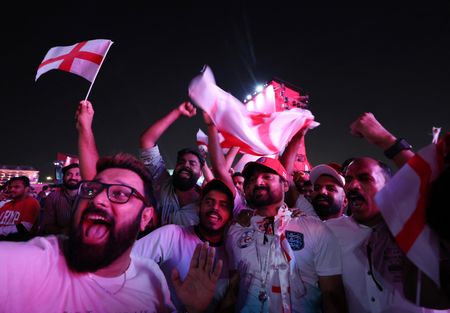 DOHA (Reuters) – England fans at their first match mostly gave the Qatar World Cup a thumbs-up on Monday despite the ban on alcohol in the stadiums and continuing criticism from advocacy groups over human rights issues.