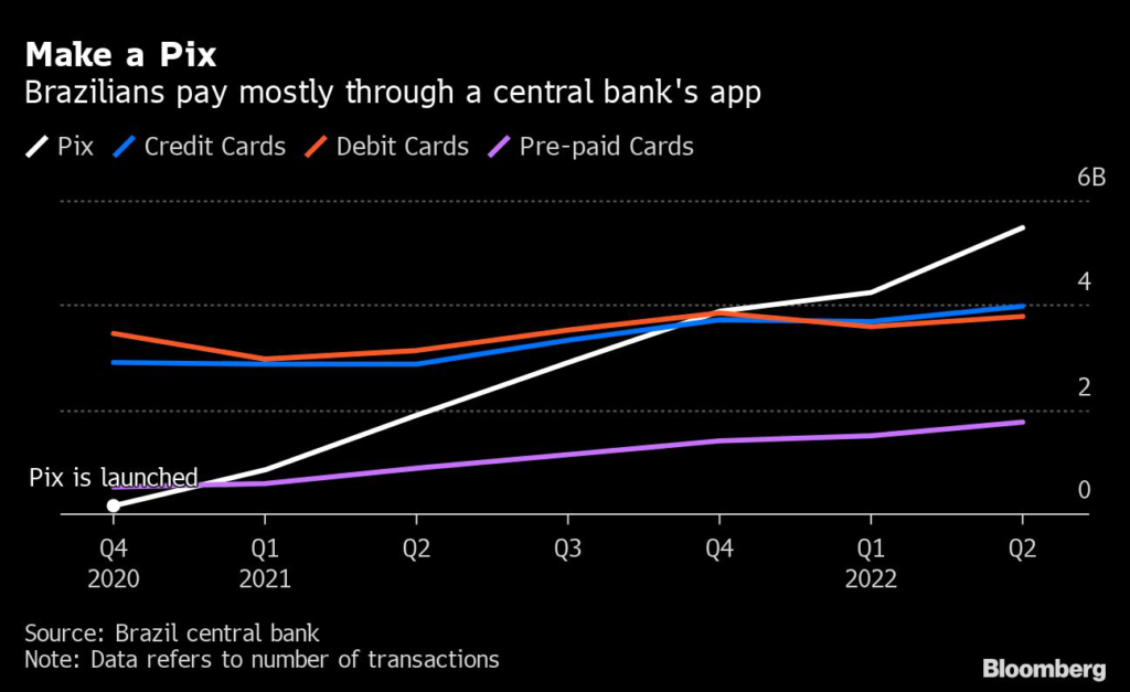 Cash transfers made through the so-called Pix platform surpassed credit card payments for the first time in the fourth quarter of 2021 and have continued to grow since, according to central bank data published Tuesday.