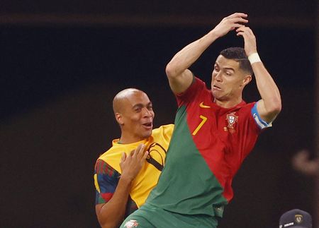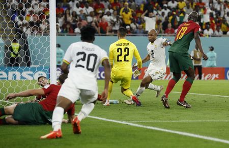 DOHA (Reuters) -Cristiano Ronaldo drew a line under a tumultuous tournament build-up as he wrote his name in the record books to become the first man to score in five World Cups in a 3-2 victory for Portugal over Ghana on Thursday.