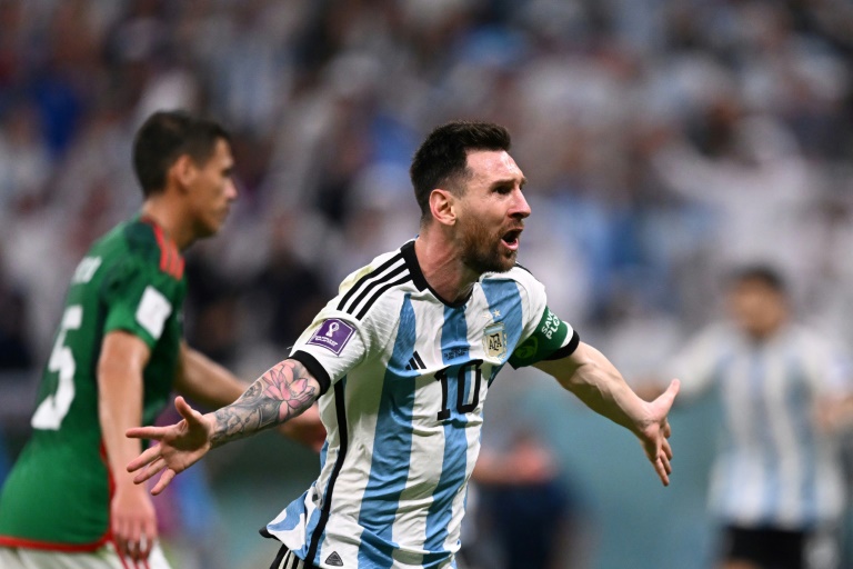 Argentina's Lionel Messi celebrates his goal in the crucial victory over Mexico
