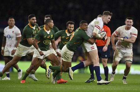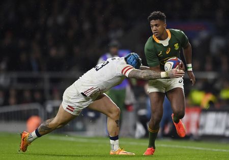 LONDON (Reuters) -South Africa half-backs Damian Willemse and Faf de Klerk put England to the sword on Saturday with a relentless drum beat of drop goals, penalties and try assists in a 27-13 victory, that ended the hosts’ patchy autumn series on a decided downer.