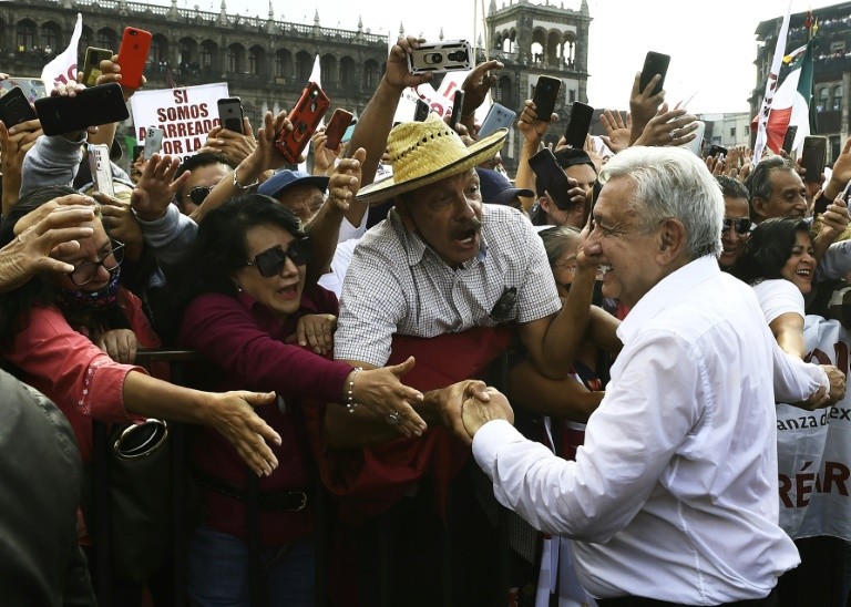 Lopez Obrador, 69, was mobbed by supporters as he spent more than five hours walking a few kilometers (miles) through the crowds to Mexico City’s main square, amid cries of “it’s an honor to be with Obrador.”