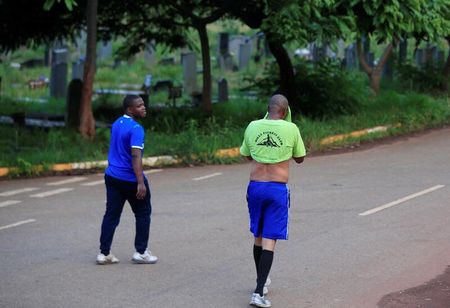 HARARE (Reuters) – It is early morning at a cemetery in Zimbabwe’s Warren Park, a few miles west of central Harare, and 19-year-old Lesly Madubeko is drenched in sweat from an hour-long workout.