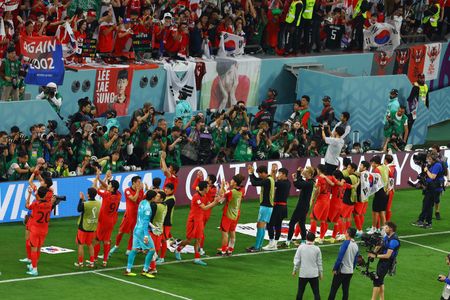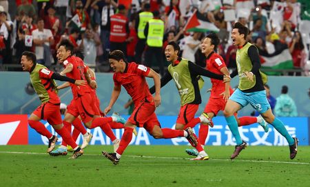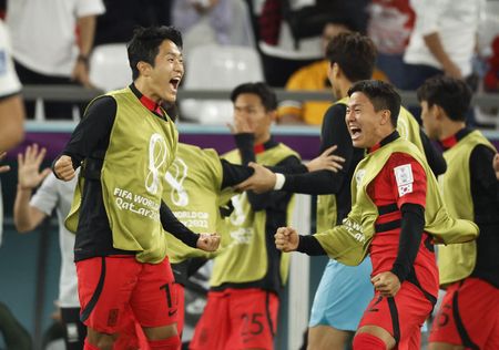 AL RAYYAN, Qatar (Reuters) -South Korea’s Hwang Hee-chan scored in added time to snatch a 2-1 comeback win over Portugal on Friday but they then faced an agonising 10 minute wait on the pitch before discovering it was enough to send them into the World Cup last 16 on goals scored.