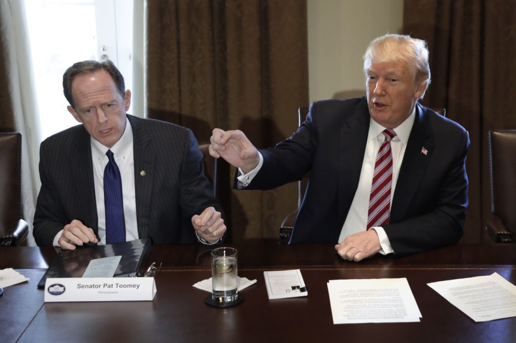 Toomey said Republicans should coalesce around a few candidates before primary voting starts to avoid the large slate of Republican candidates that boosted Trump in 2016.