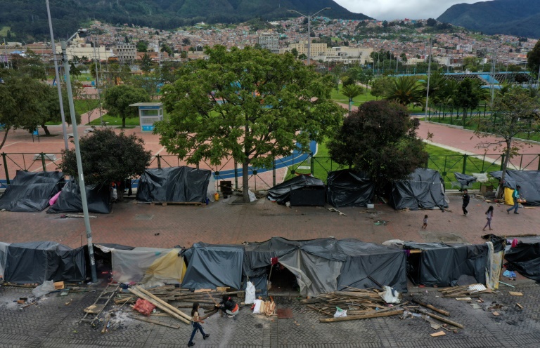 A file photo from August 2020 shows an improvised camp of indigenous Embera people in Bogota, the capital