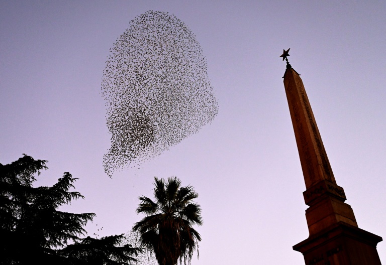 A murmuration of starlings in the sky over Rome