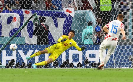 AL WAKRAH, Qatar (Reuters) -Croatia goalkeeper Dominic Kivakovic saved penalties from Takumi Minamino, Kaoru Mitoma and Maya Yoshida before Mario Pasalic netted the winning spot-kick in their 3-1 shootout win over Japan on Monday to reach the World Cup quarter-finals.
