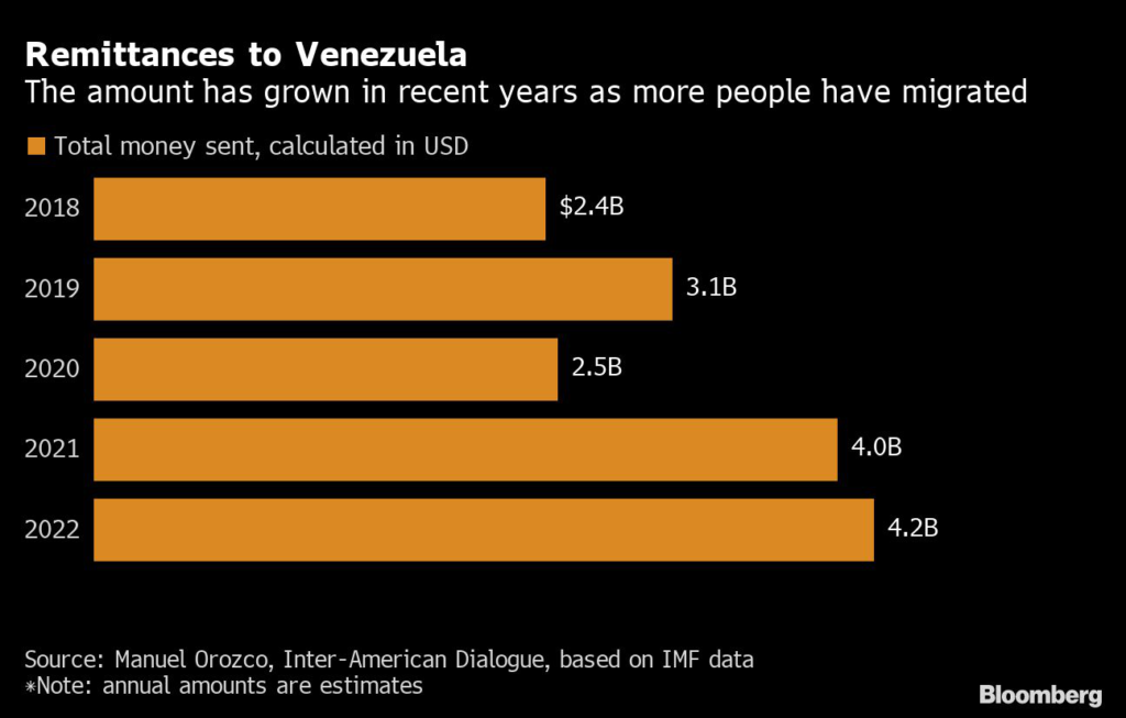 In just four years Venezuela has become a major remittance-depending country, according to the report seen by Bloomberg News.