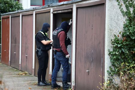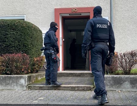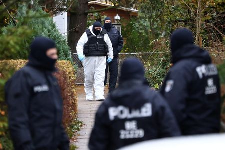 BERLIN (Reuters) -Twenty-five alleged members and supporters of a far-right terrorist group suspected of aiming to overthrow the German state were detained early on Wednesday during raids across Germany, the federal prosecutor’s office said.