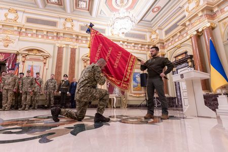 Addressing servicemen later in the presidential palace in Kyiv, Zelenskiy said he had spent the day with troops in Donbas, theatre of the heaviest battles, and in Kharkiv region, where Ukrainians have retaken swathes of occupied territory from Russian forces who invaded more than nine months ago.