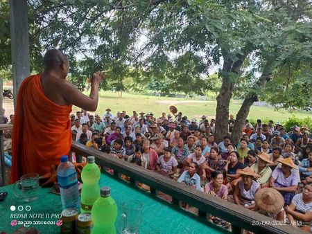 Wathawa and other ultranationalist monks have appeared marching alongside soldiers, carrying weapons, in images published by local media and verified through open-source investigation by UK-based monitoring group Myanmar Witness, which also geolocated militia training happening at his monastery in Kantbalu, in central Myanmar.