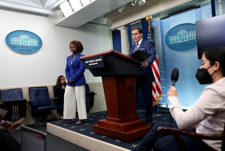 US national security spokesman John Kirby, pictured with White House spokeswoman Karine Jean-Pierre, said the suggestion a convicted Russian murderer held in Germany could be freed in exchange for an ex-US Marine was not considered 'a serious offer'