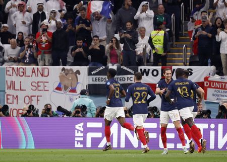 AL KHOR, Qatar (Reuters) – Olivier Giroud sent France into a World Cup semi-final with Morocco as his late header after Aurelien Tchouameni’s opener clinched a gutsy 2-1 win over England on Saturday with Harry Kane blazing a penalty over the bar six minutes from time.