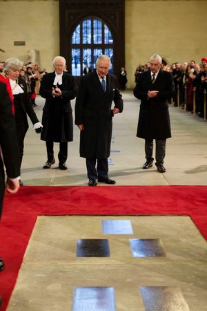 Charles unveiled a plaque commemorating the Lying-In-State of the late queen in Westminster Hall, where some 250,000 people filed past her coffin – many waiting for hours through the night in a miles-long queue to pay their respects.