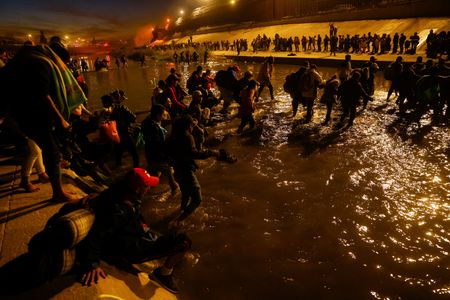 CIUDAD JUAREZ, Mexico (Reuters) – About 1,500 people crossed the Rio Grande overnight from Mexico into El Paso, Texas, a Reuters witness said on Monday, amid an increase in migrant arrivals in the area ahead of the expiry of a pandemic-era order that blocks them at the U.S.-Mexico border.